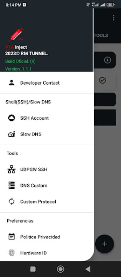 VTA Inject PLUS is an all-in-one application that allows you to browse through a VPN client and force SSH for your Internet connections. With it, we can customize the IP address through which we want to browse the Internet, ideal if we have a personalized VPN. In addition, we can access blocked sites behind a firewall using 'SSH tunneling'. And all this without the need for root.