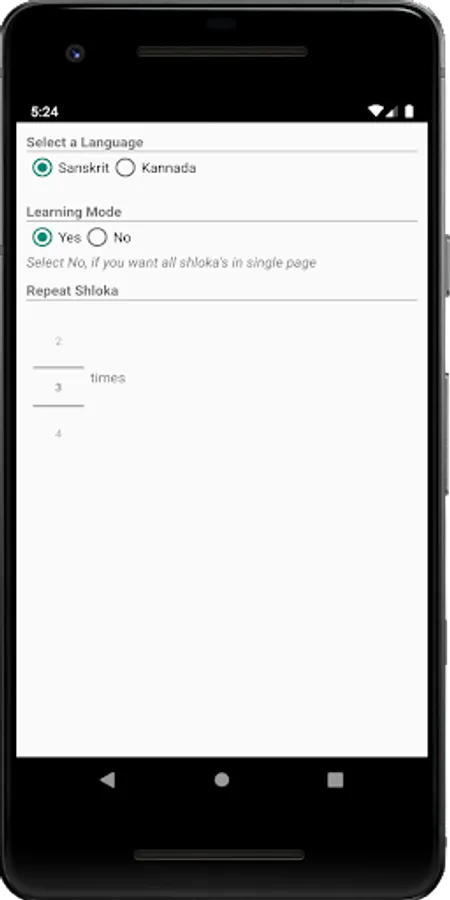 3. Option to display the shlokas in Sanksrit or Kannada language in addition to English