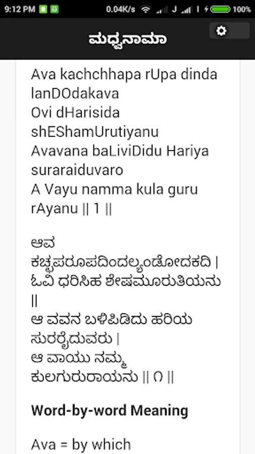 One of the most popular works of Shripadaraja is madhvanama. This is a kannada poem extolling Vayu Devaru and his three incarnations. It follows the structure of Shri Hari-Vayu stuti and was composed by Shripadarajaru for the benefit of those who don't know sanskrit and / or are not allowed to recite the Vayu-stuti.
