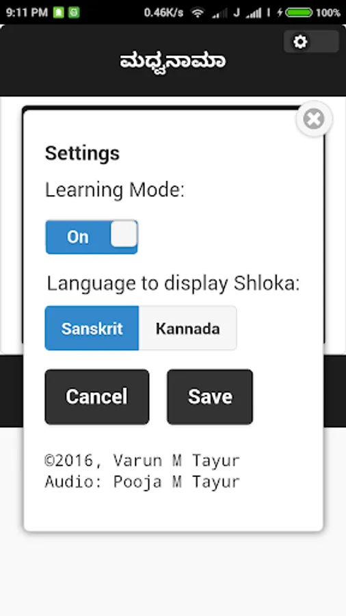 Song is sung by Mrs. Pooja M Tayur (renowned classical singer).