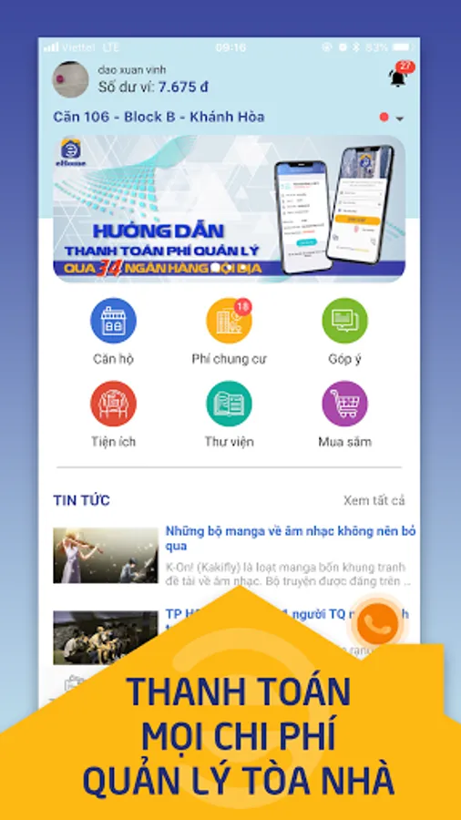 • Easy payment of all service bills, building management fees with e-wallets, all domestic and international banks