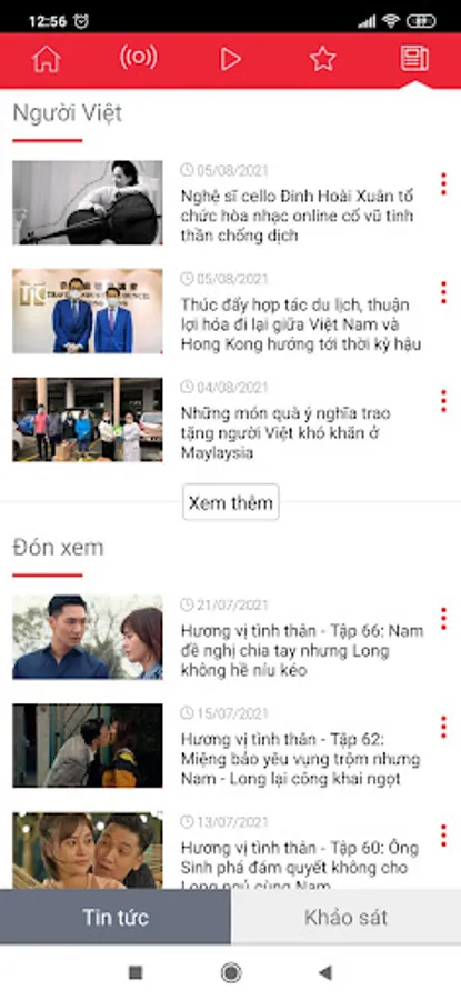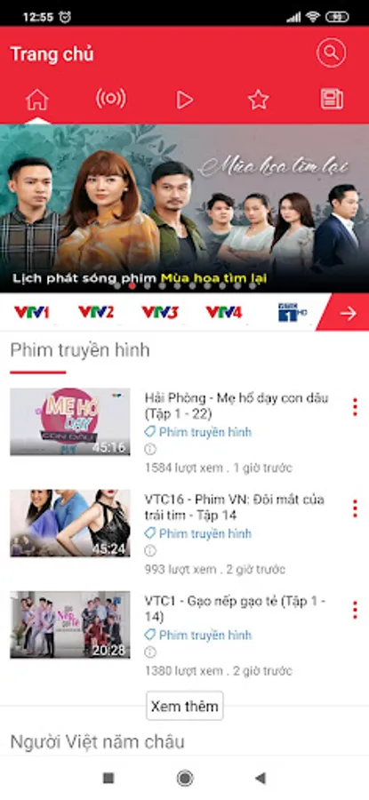 - 20 online TV channels: VTV1, VTV2, VTV3, VTV4, VTC1, VTC10, VTC16, HTV9, HANOI1, VNA, Dong Thap, Dong Nai, Quang Binh, Hai Duong, Thai Binh, Hung Yen, Hai Phong, Thanh Hoa, Nghe An, Vinh Long.