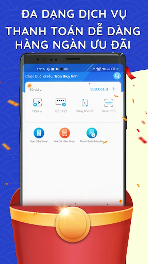 • Hỗ trợ nạp tiền dễ dàng thông qua 33 ngân hàng nội địa