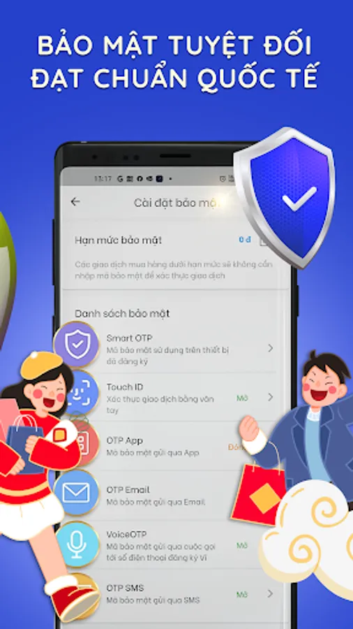 • Công nghệ bảo mật chặt chẽ bao gồm bảo mật đăng nhập (mật khẩu đăng nhập & bảo mật thiết bị) và bảo mật thanh toán (bảo mật qua mã ODP/OTP khi thực hiện giao dịch)