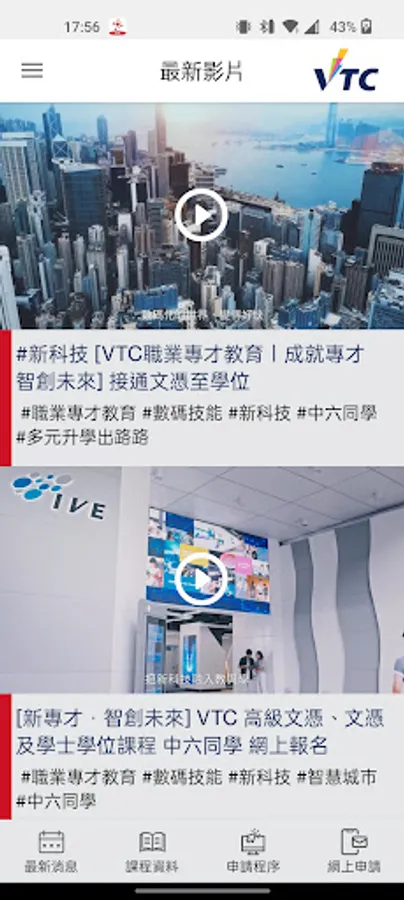 The "Smart Selection for Secondary School Students" mobile application provides the latest information on further studies, including important date reminders, course information, application procedures and graduate sharing, etc. for Secondary 3 to 6 students, parents and teachers. Users can also watch the latest videos and 360 facility tours through the mobile app, and add their favorite content to "My Favorites" for review at any time.
