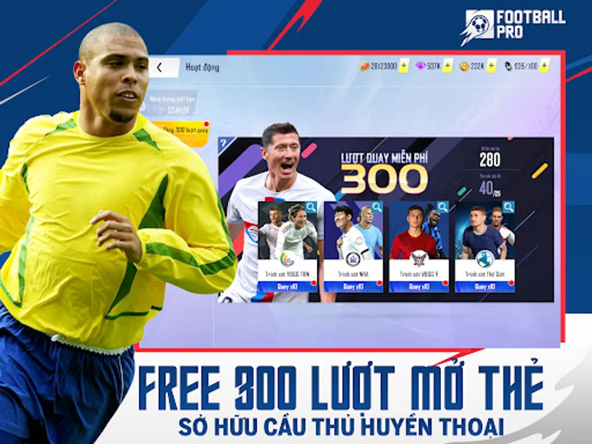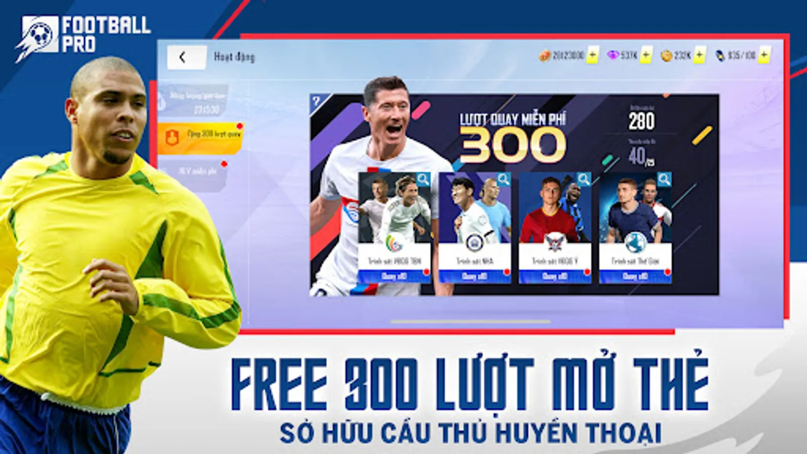 - For the first time on a mobile football game, FOOTBALL PRO VTC plays big and gives Free 300 free spins when reaching level milestones