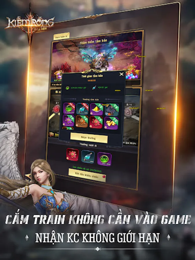 The game's unique train feature doesn't work but still has food, SEARCH DRAGON - VTC does not force you to plow, save time with busy Warriors, you can go online 1-2 hours to PK with your brothers , receive all the gift milestones in the game without having to go to the game to plow through the night like other games