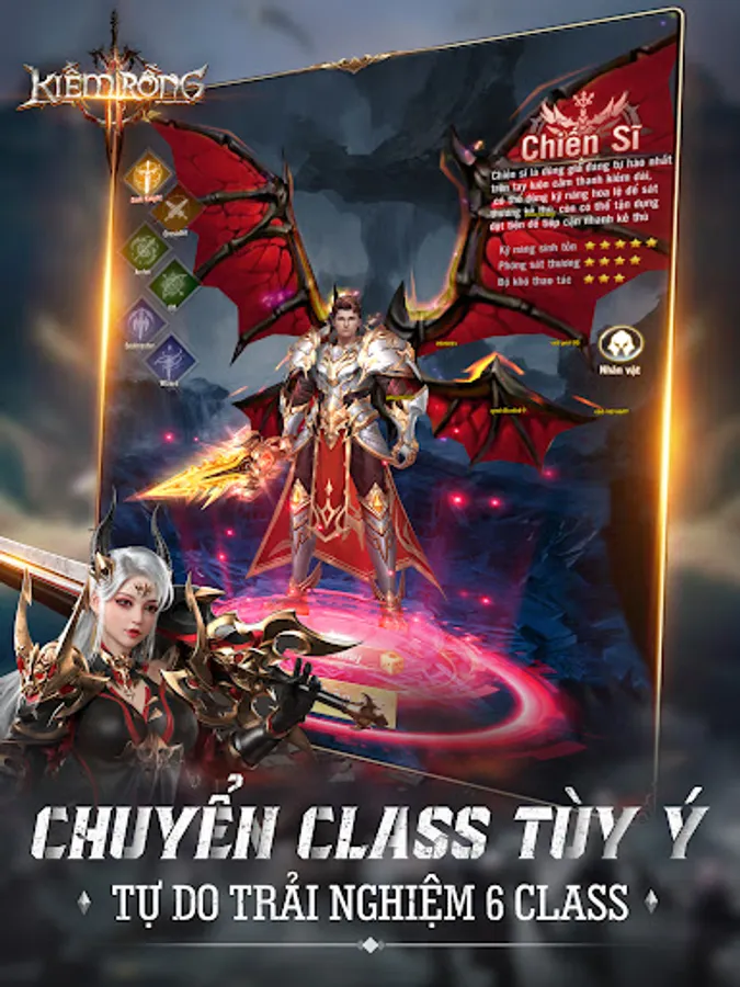 Dragon Sword has 6 separate classes: Dark Knight, Soulmaster, Elf, Crusader, Archer, Wizzard, Game allows to switch gender, change gender freely without having to plow back the equipment you are wearing, the equipment of the Warrior will automatically move to follow the new sect while keeping the existing attributes and enhancement levels.