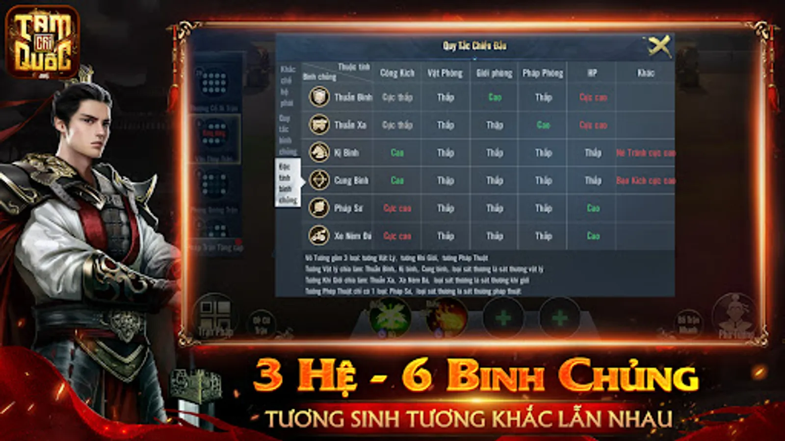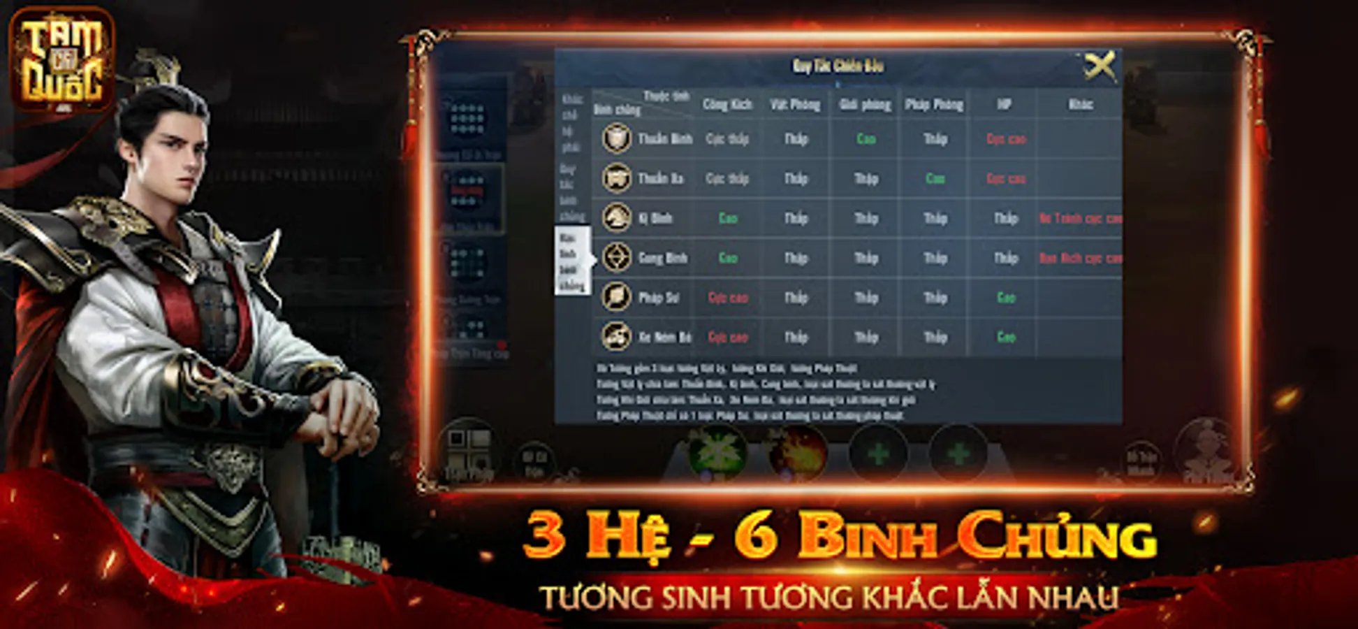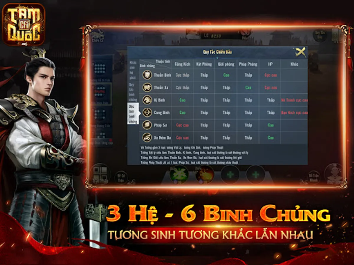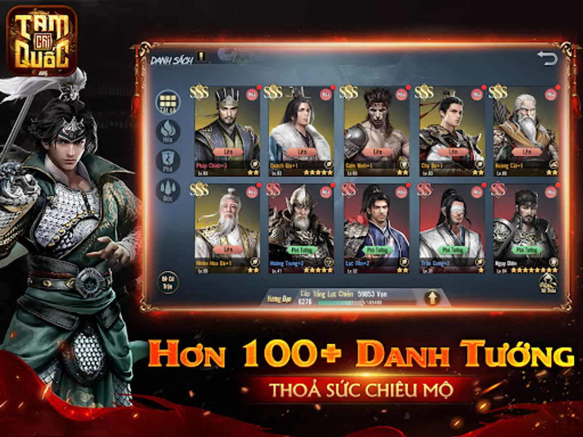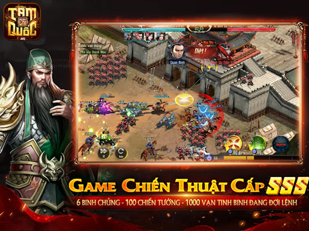 The game owns a system of 100+ extremely massive generals with 6 different types of troops and 3 systems: Destruction - Poison - Fire mutual contrast, 3x4 battle system, diverse plans, freedom to control soldiers. generals. This is the difference when the player not only collects and arranges the squad of generals, but also has to customize, creatively choose, and command the troops to bring victory when fighting the enemy.