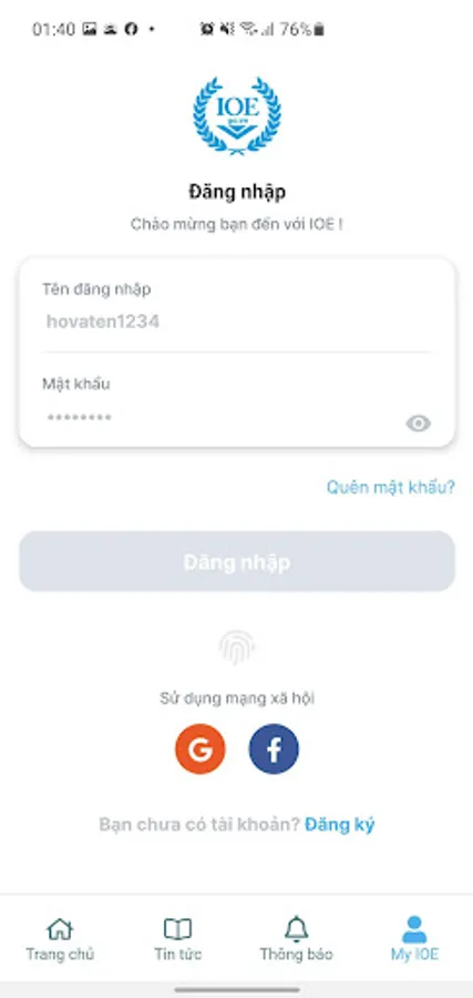 NOTE: In the current version, you must have an account that has been registered for educational information on the IOE website (ioe.go.vn) to have the right to use this application.