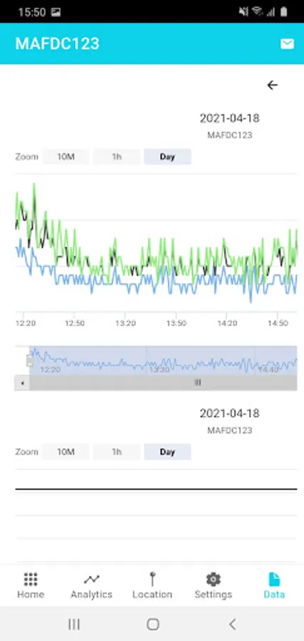 The app also keeps track of your location, so that you can link the particulate matter concentrations to a location. The real-time particulate matter level can be seen on the main page. On the analysis page you can view the particulate matter level progression over the day. In addition, by pressing the download button, the collected particulate matter data is sent via e-mail. All previous measurements can then be viewed on the data page.