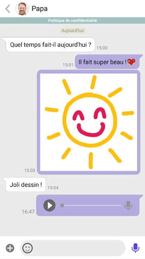. A SUPER FUN APP! Customize your KidiCom Chat™ avatar with your photo or choose an illustrated character for your profile. There are also many personalized stickers and messages. The owner of the toy can also have fun transforming his voice into the voice of a robot or a little mouse!