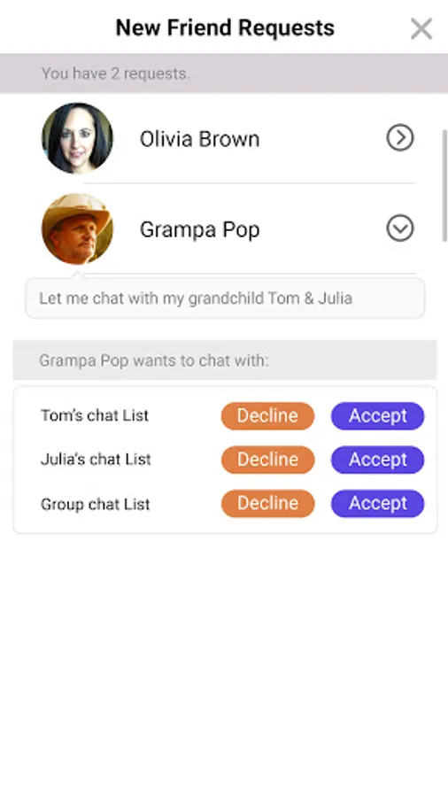 • You approve all contacts before communication can take place. Users who are not on the contact list cannot contact your family members.