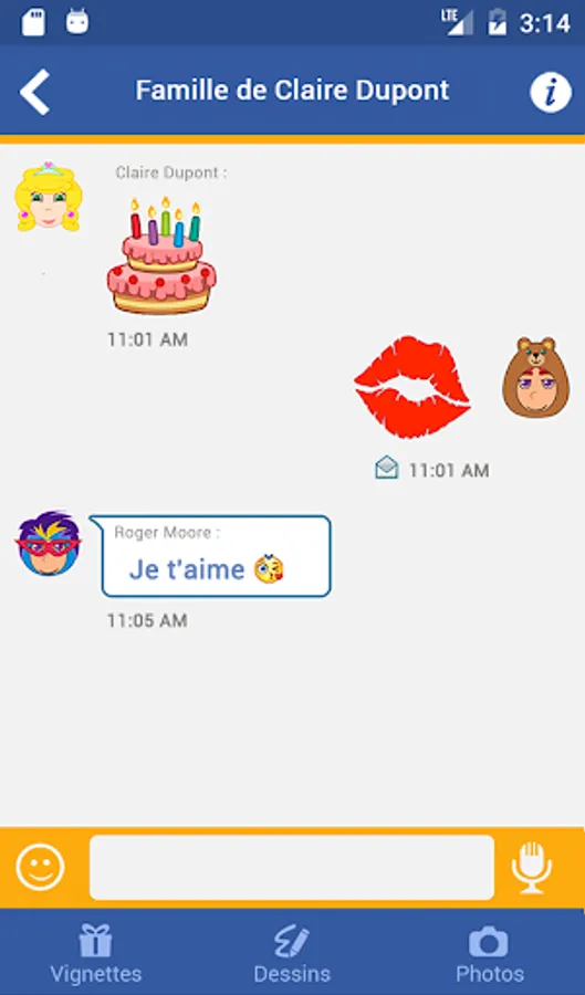 . APPLICATION SUPER FUN! Customize your avatar KidiConnect with your photo or choose an illustrated character to your profile. There are also many stickers and personalized messages. Your child can also have fun transforming his voice in voice of robot or little mouse!