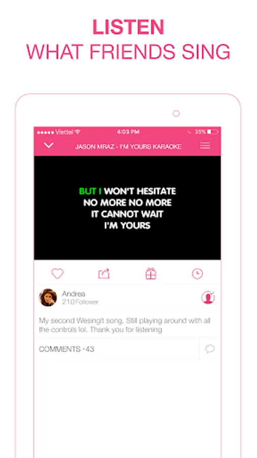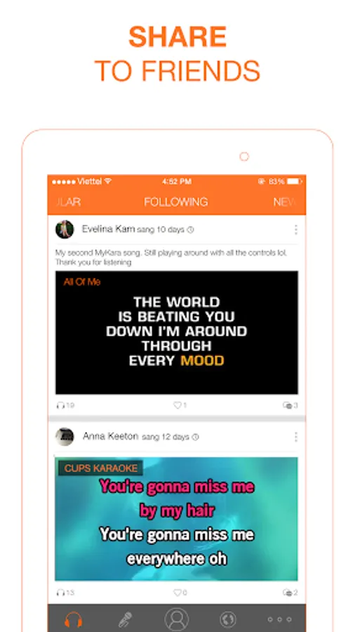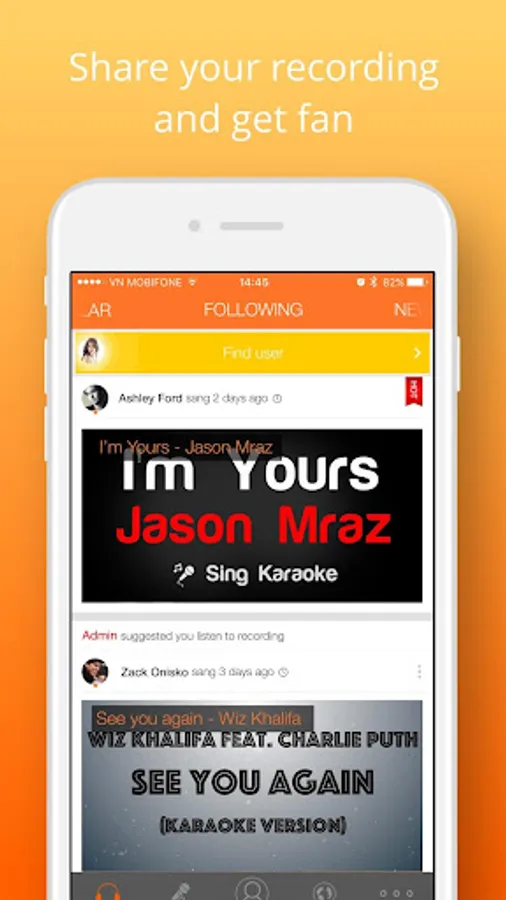 Just choose the song you want to sing and your voice will be mixed with the song just like you record in a professional studio. Incredible, ALL FOR FREE!!!