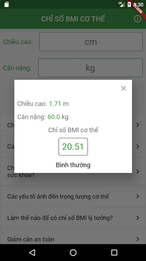 The application calculates BMI from height and weight, is a reliable indicator of a person's fatness.