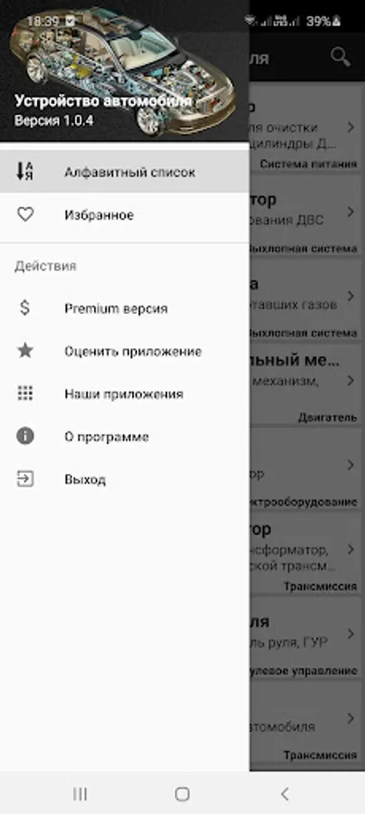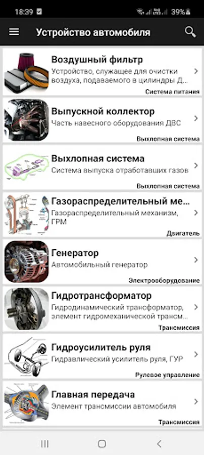 "Car device" is a useful application that contains a comprehensive description of all components and systems of a modern car.