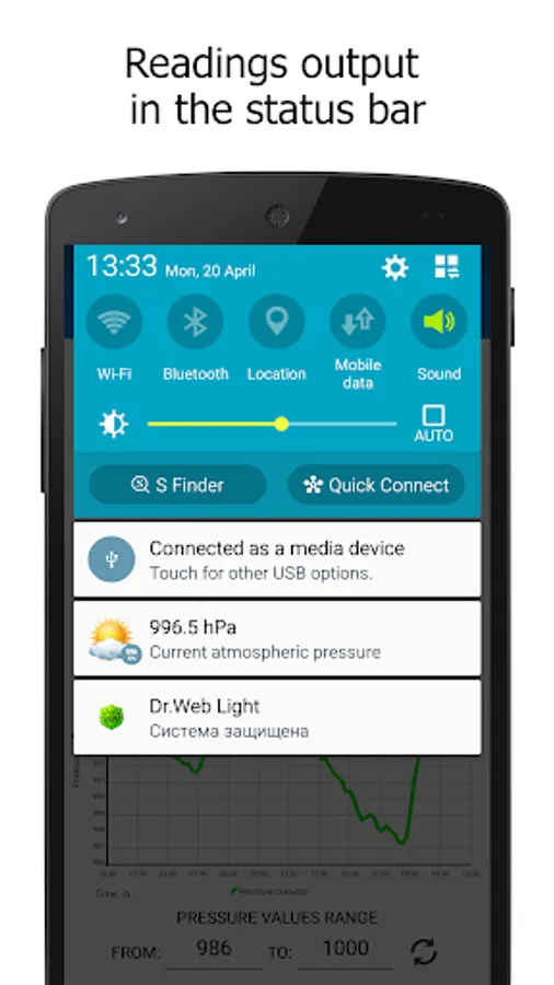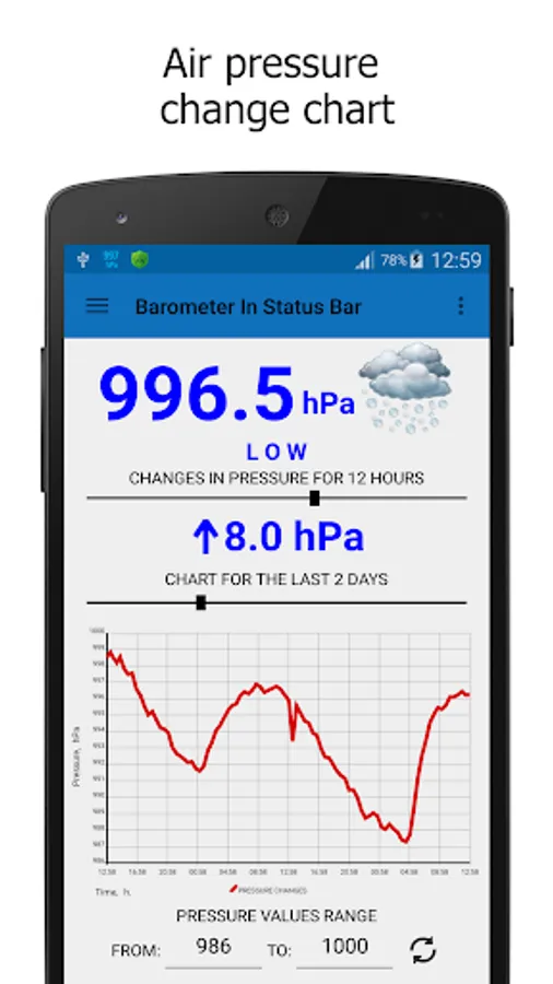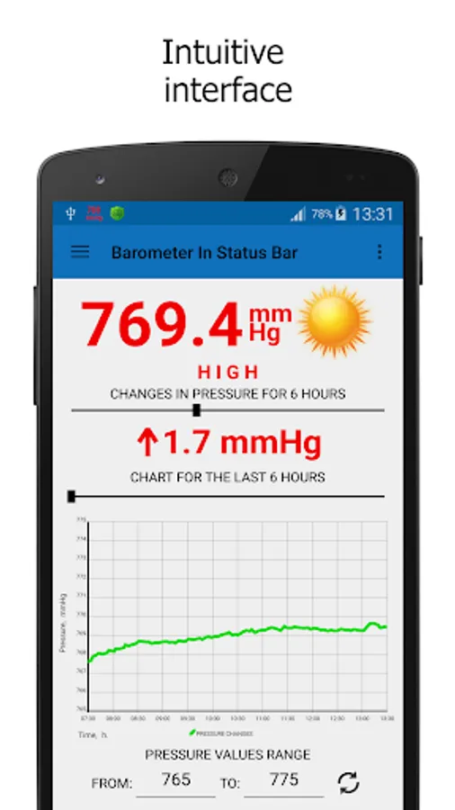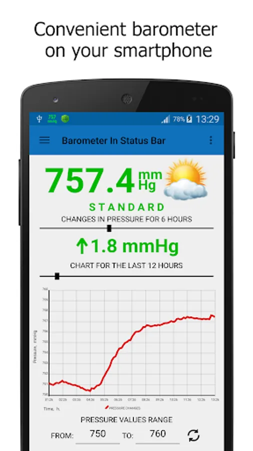 Barometer in the status bar — an application for measuring atmospheric pressure on Android smart devices equipped with a pressure sensor.