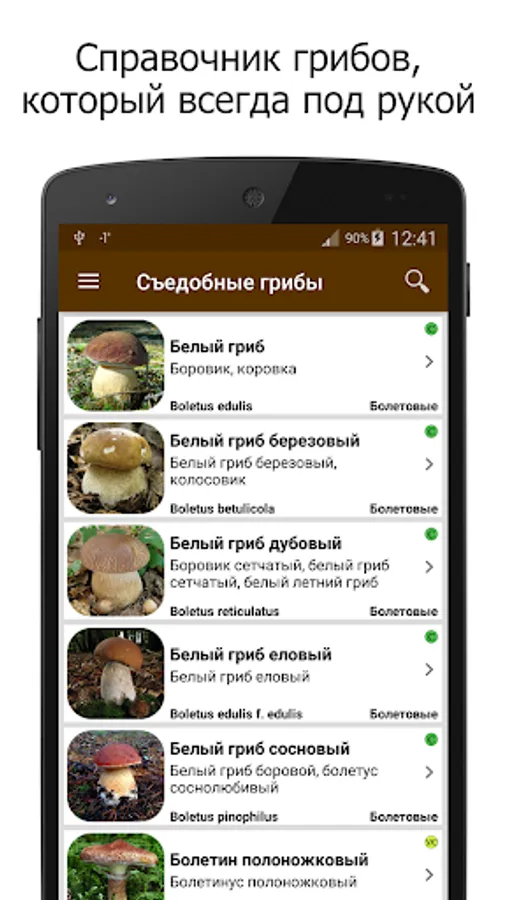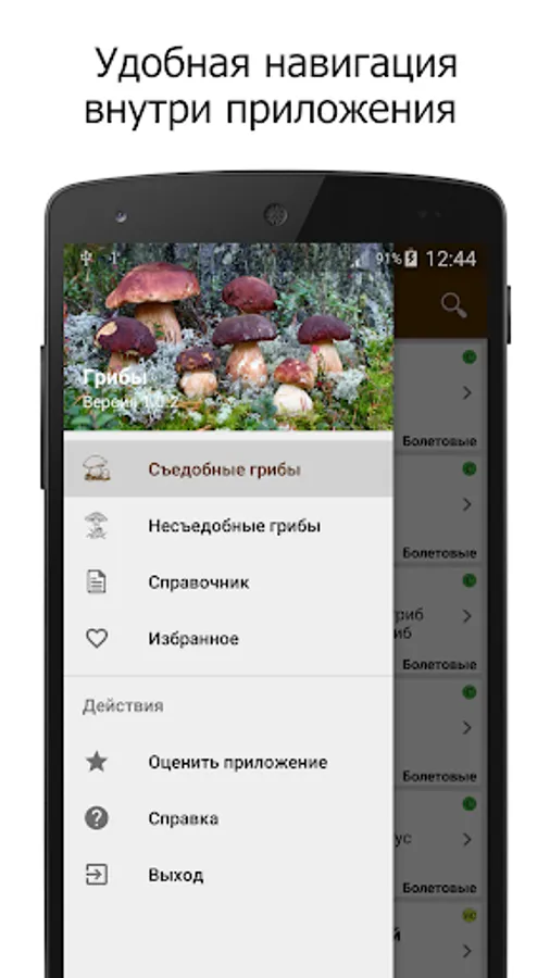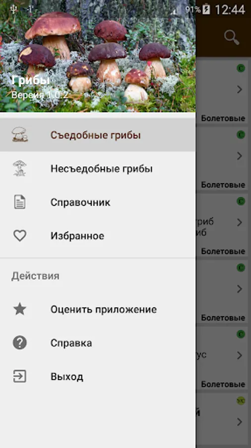 “Mushrooms” is a useful application containing a detailed description of the most well-known edible, inedible and poisonous mushrooms growing in Russia and the near abroad. It will be useful for both novice mushroom pickers and experienced lovers of quiet hunting.