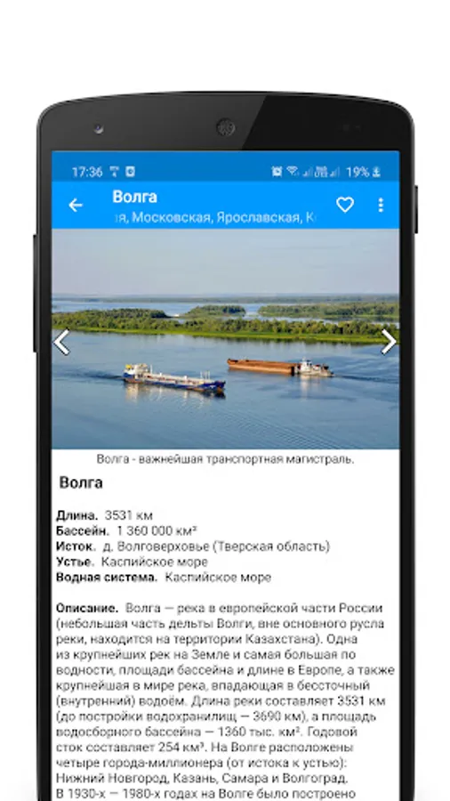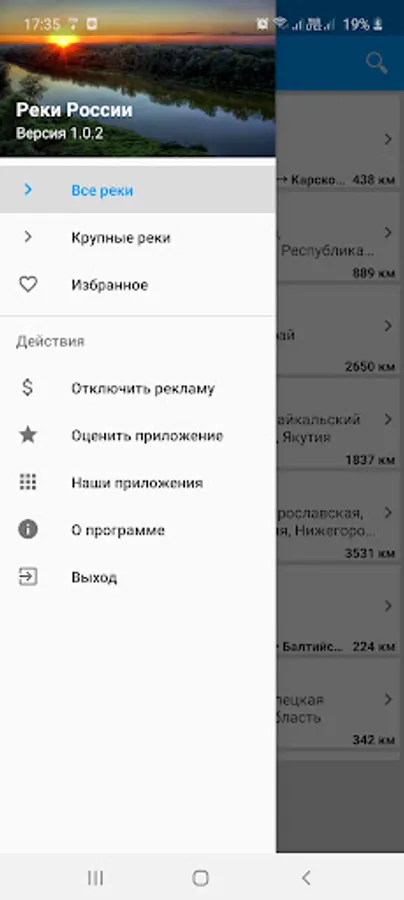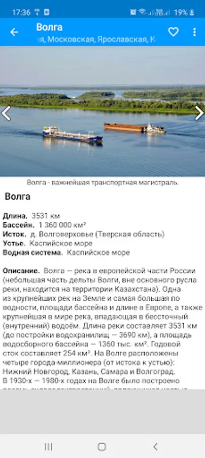 "Rivers of Russia" is a useful application containing a detailed description of the most famous large and small rivers flowing through the territory of Russia and neighboring countries.