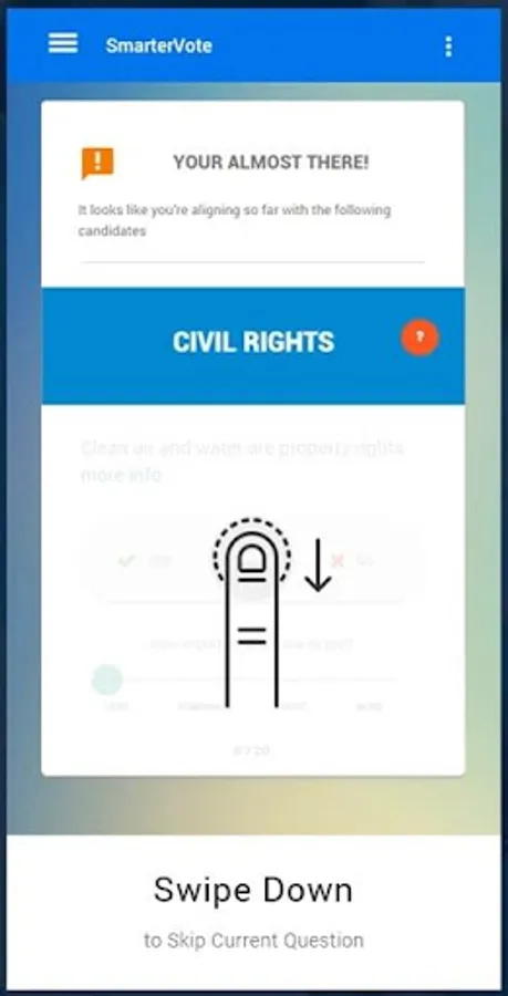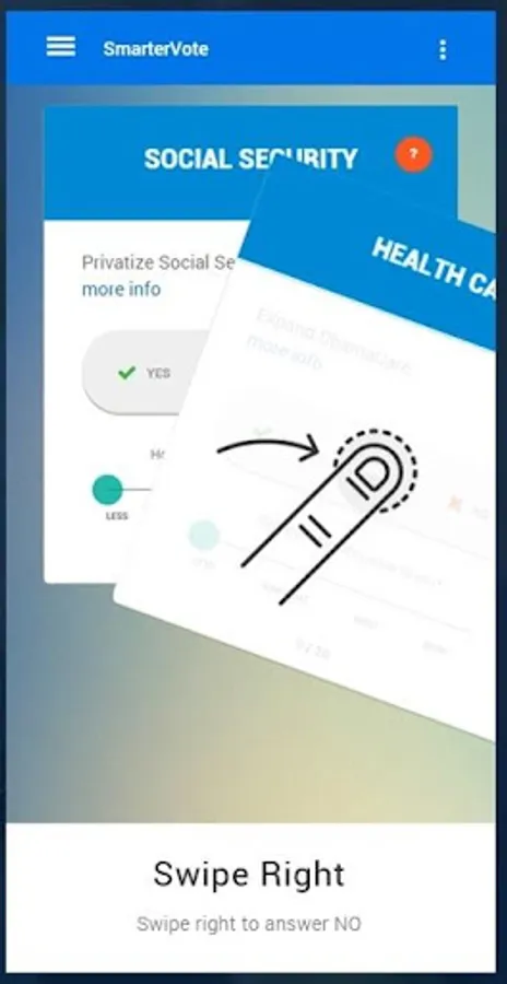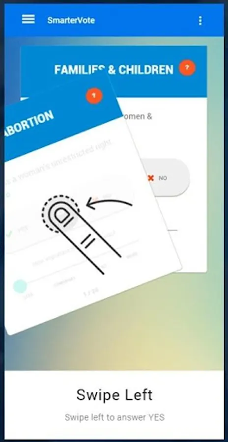 DECIDE: how important an issue is for you by swiping left or right, you can even skip the question altogether by swiping down.