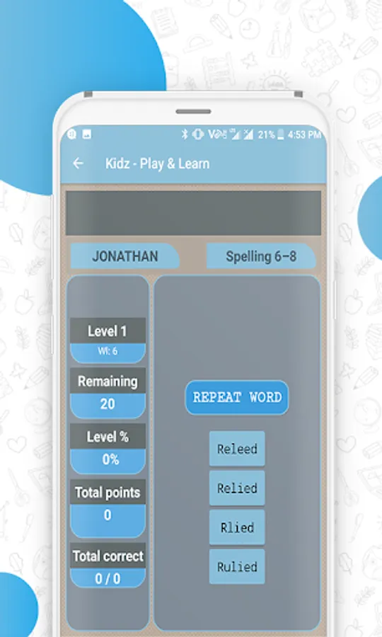 Kidz - Play and Learn is an learning application with fun. Verious lessions about Math, Spellings, Clocks, Plurals are made in very funny and engaging manner which would be like a Game to play for Kids. Its a free learning game designed to teach young children numbers and mathematics. It features several game levels that kids will love to play, and the more they play the better their skills will become!