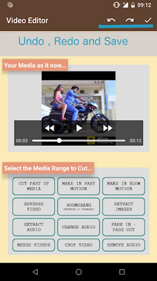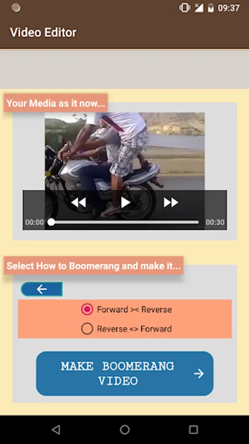 Wouldn't it be amazing if you can turn the video into reverse playing?? yes sometime for some videos it could be. So here comes the Reverse Video feature, same Video, same duration but playing in reverse mode.