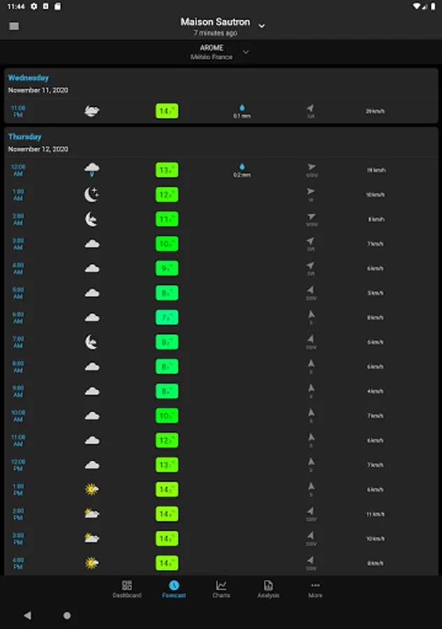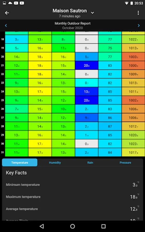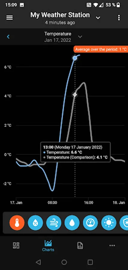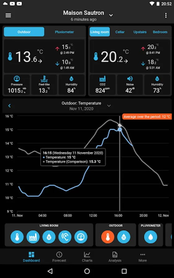 - Compare each metric (temperature, wind, pressure…) with the previous period (the day before, last year…).