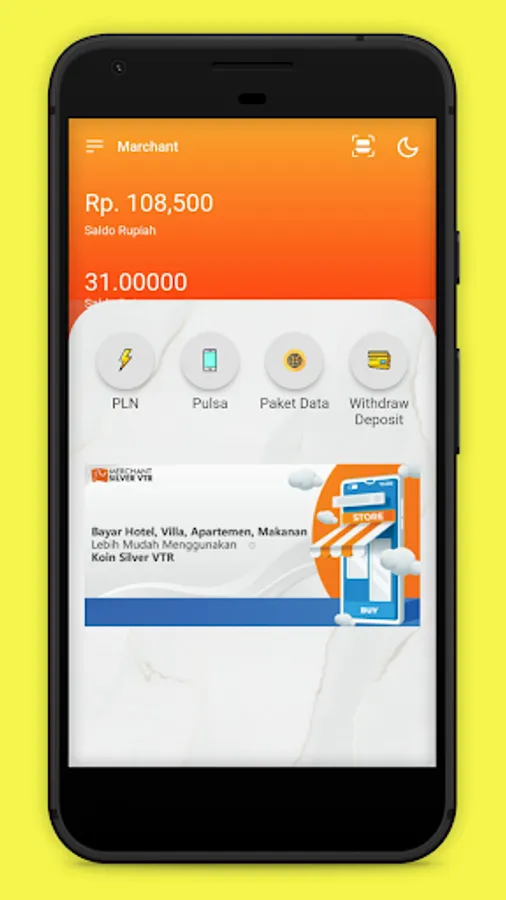 We present the convenience of transacting on the silver vtr application with this silver vtr merchant