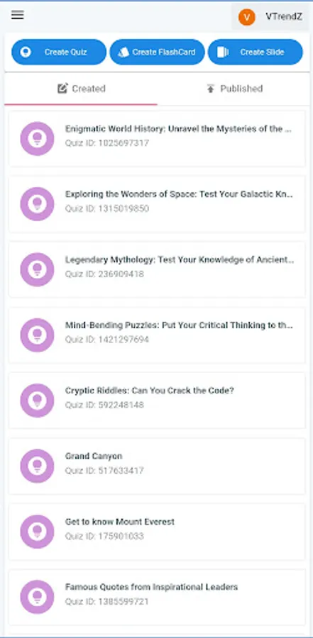 Empower learners with interactive quizzes, dynamic flashcards, captivating slides, and virtual rooms. Transform learning into an immersive experience, fostering collaboration and engagement. Create, assign, and access educational content seamlessly with VTrendZ Learnio.