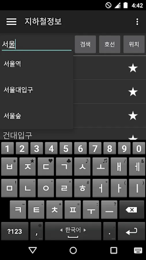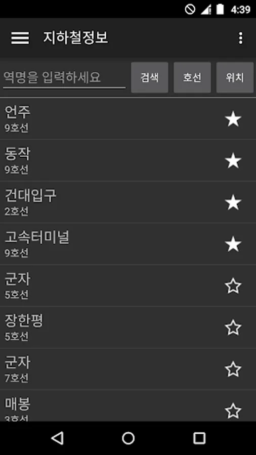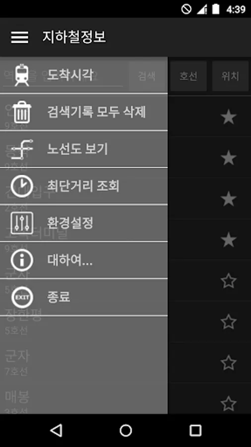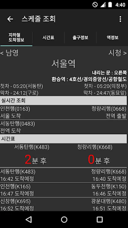 This application provides schedules for Seoul Metropolitan, Pusan, Daejeon, Daegu, Gwangju subways.