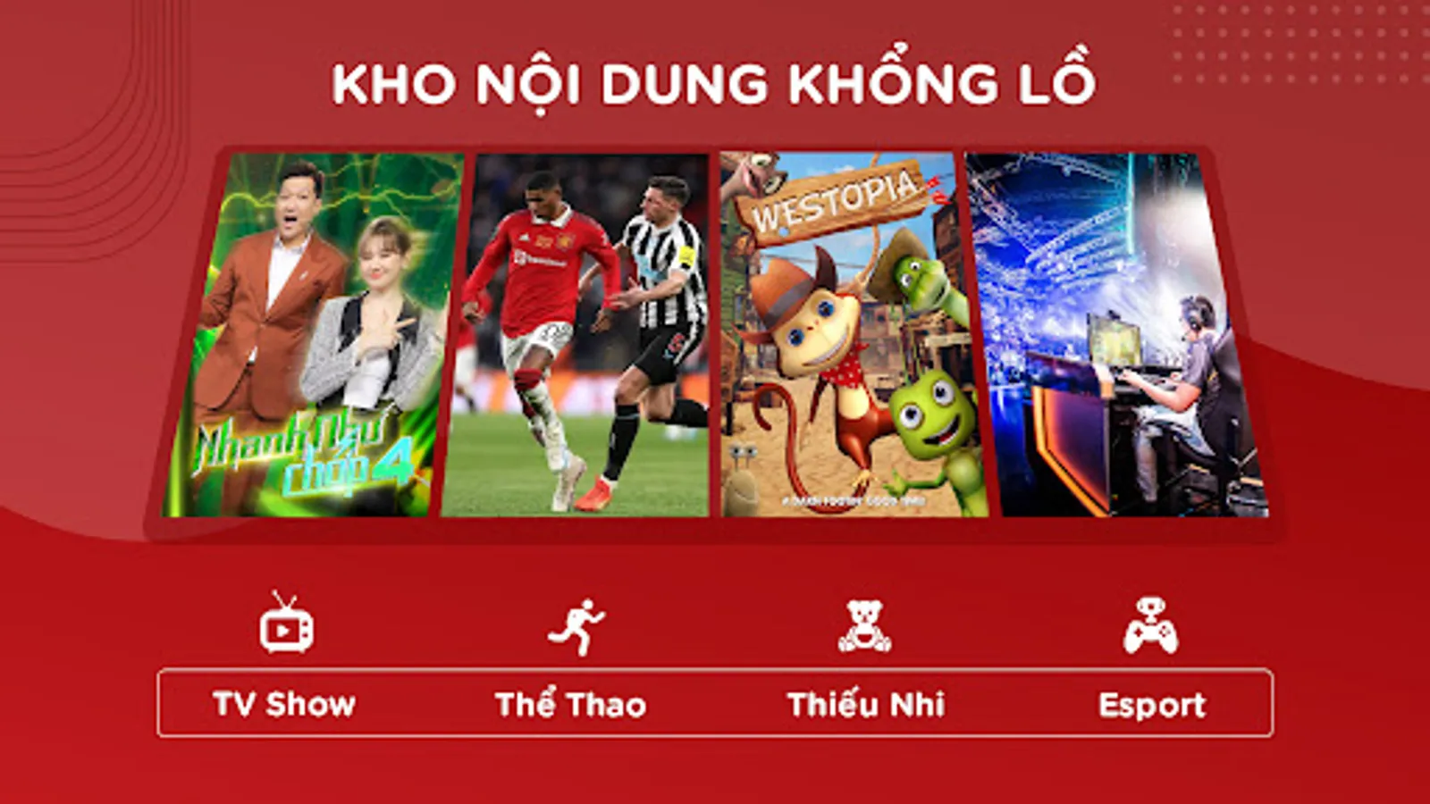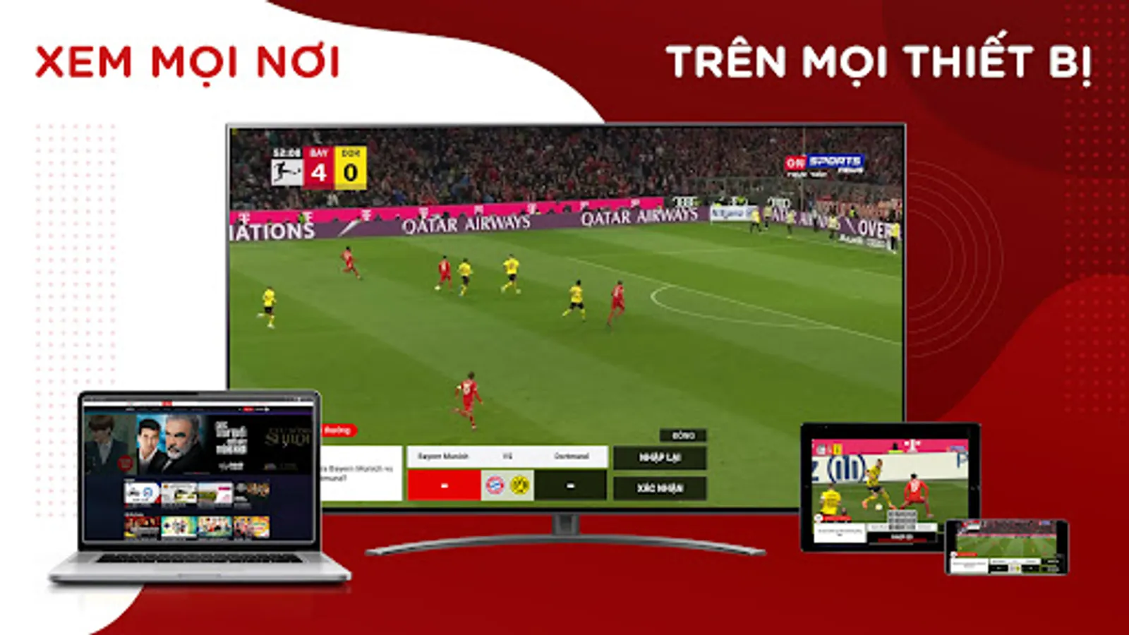 + More than 150+ domestic and international copyrighted TV channels of HD quality such as: VTV1, VTV3, VTV6, ON Sports, ON Football, ON Sports News, ON Sports +, ON Golf...