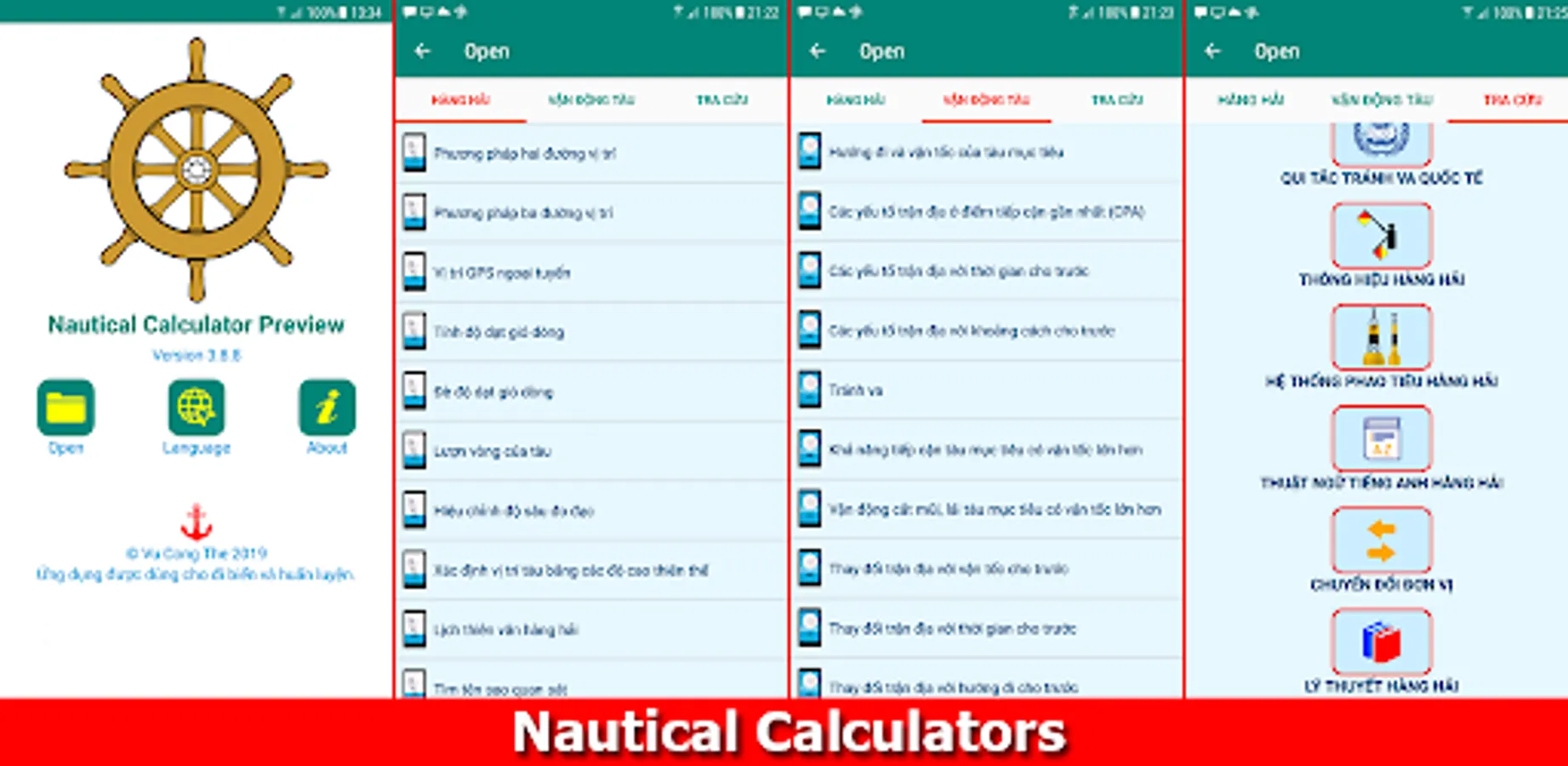 - Các tính toán hàng hải và vận động tàu, bao gồm :