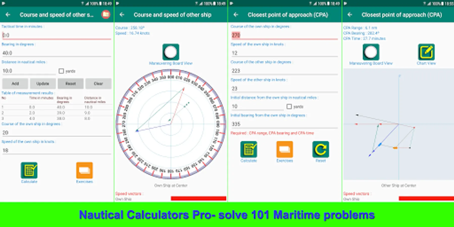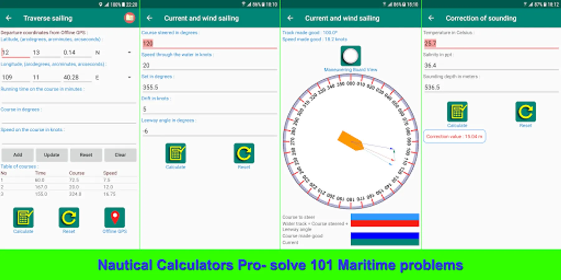 - Calculating for marine navigation and maneuvering, included :