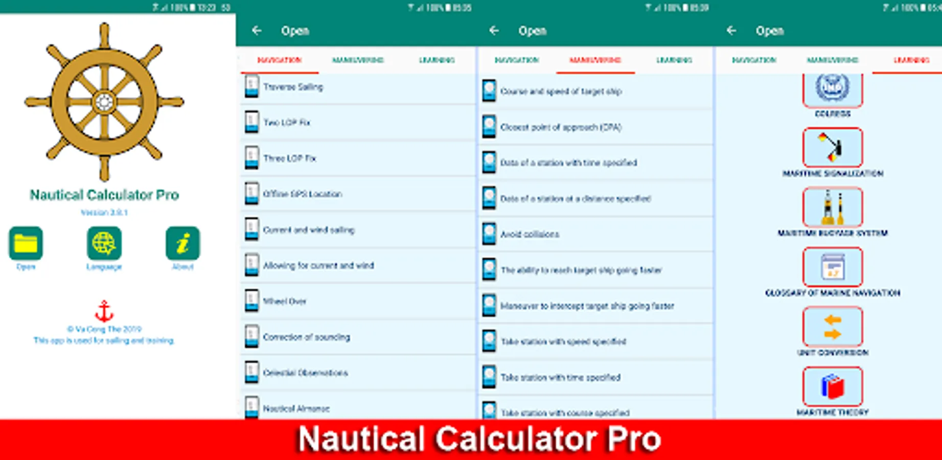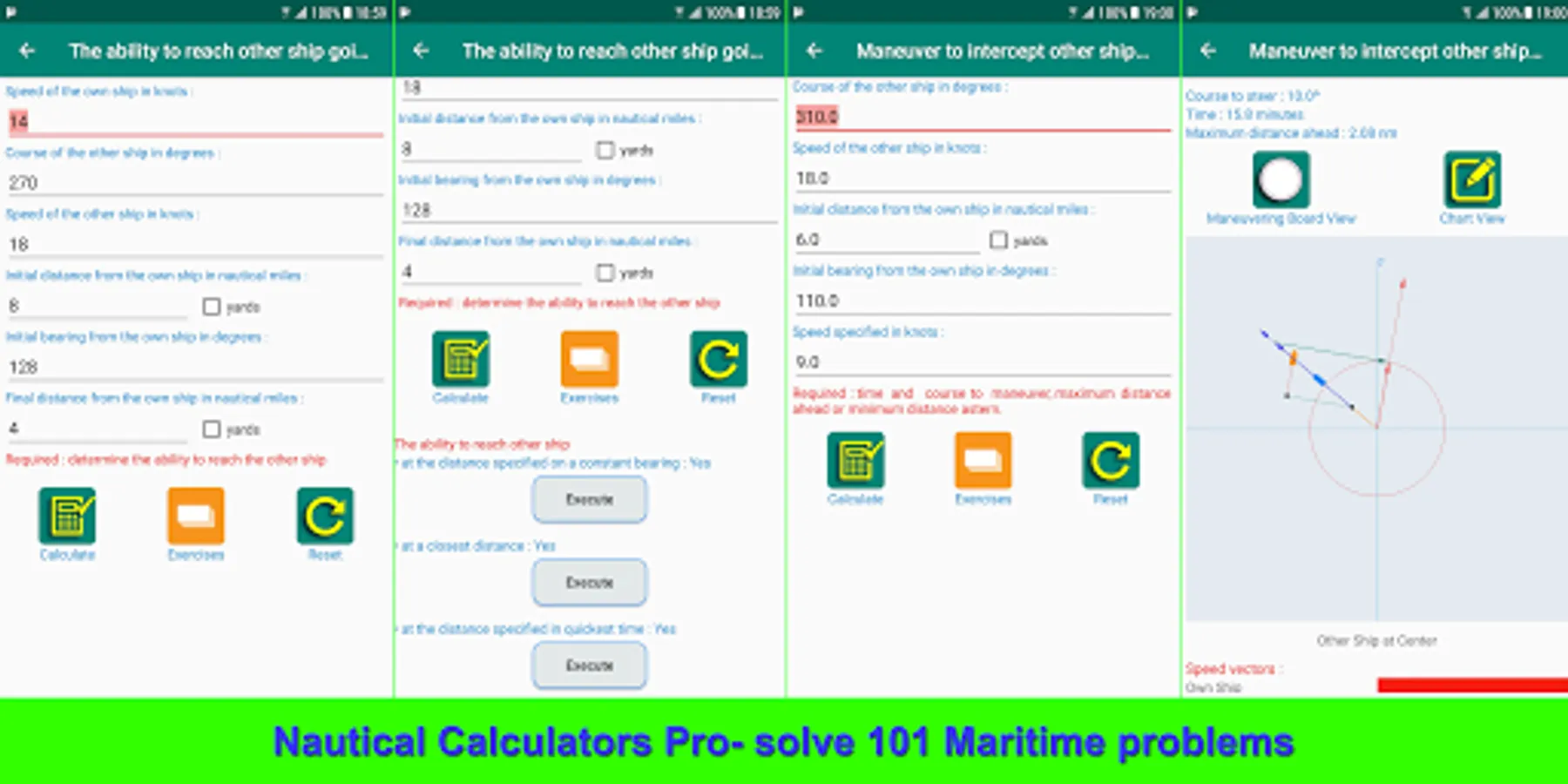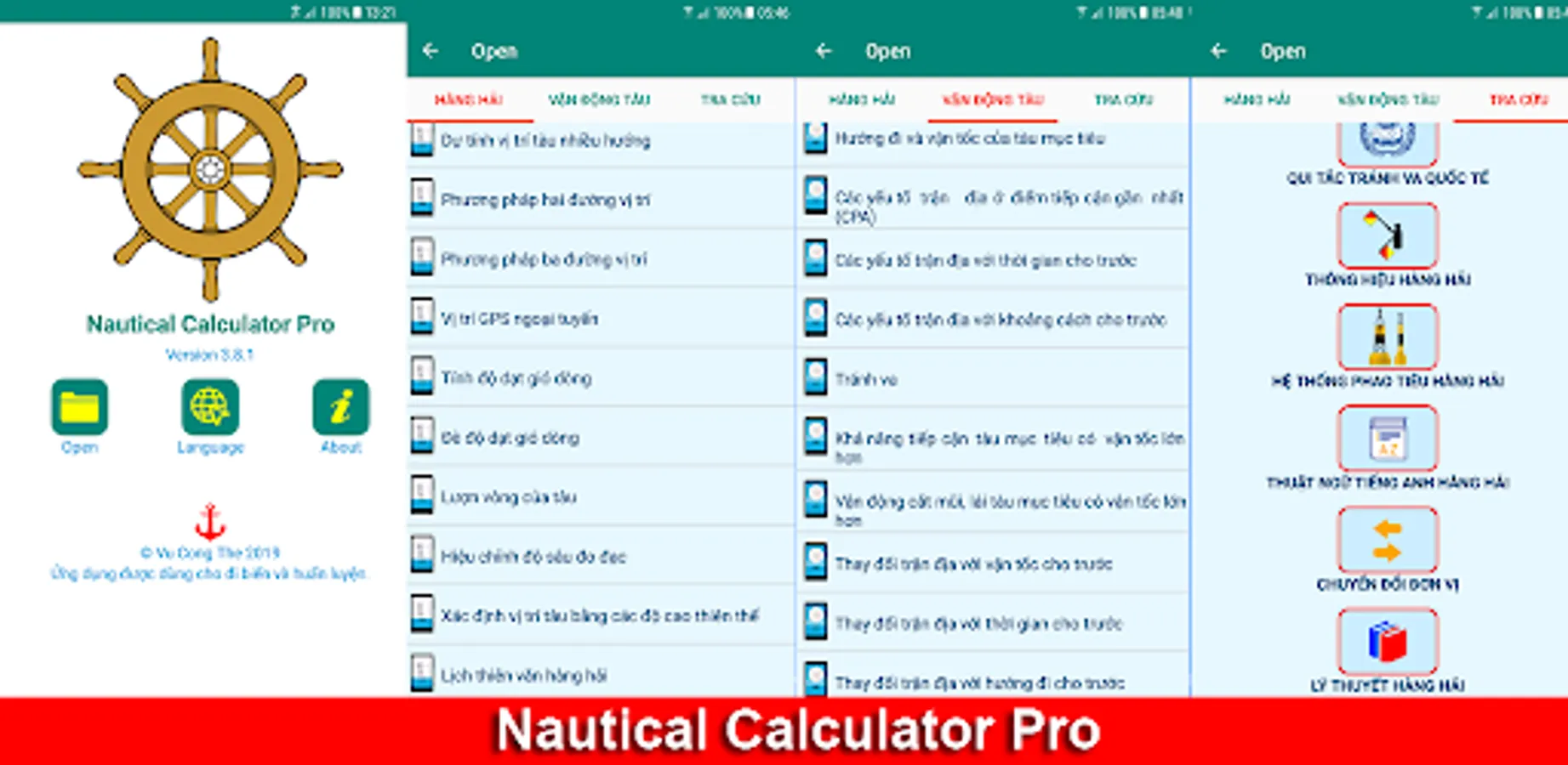 - Các tính toán hàng hải và vận động tàu, bao gồm :