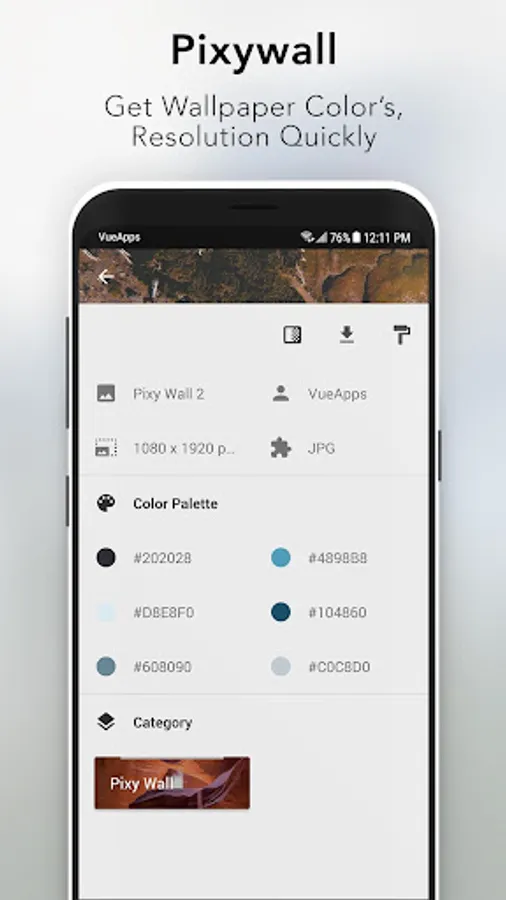 Get in-depth information about the wallpaper, from it's resolution, size, name, to the colors palette for the nerd designers.
