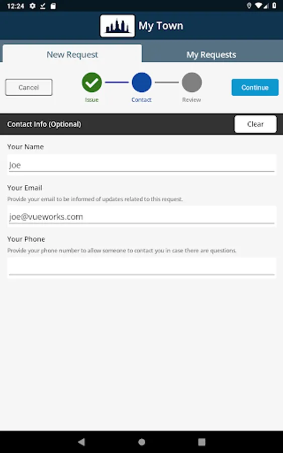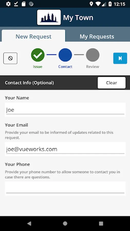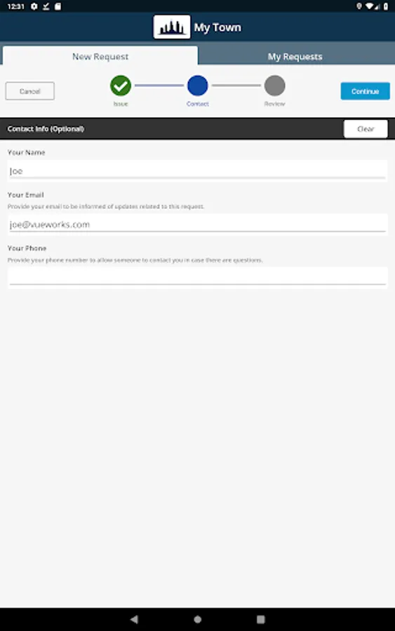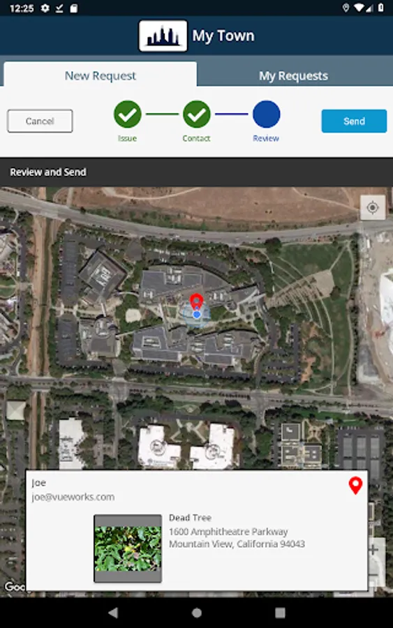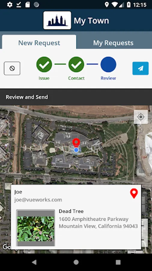 CitizenVUE is a mobile application used to encourage community involvement by engaging residents to submit a service request to the local service organization in order to help maintain safety and awareness. Citizens who live in participating areas can download the free application. When an item of concern is seen, citizens may submit a request and include comments, photos and documents to provide additional details on the issue. Email tracking of the request is optional. Service Requests received through CitizenVUE will populate directly into the organization’s VUEWorks asset management software.