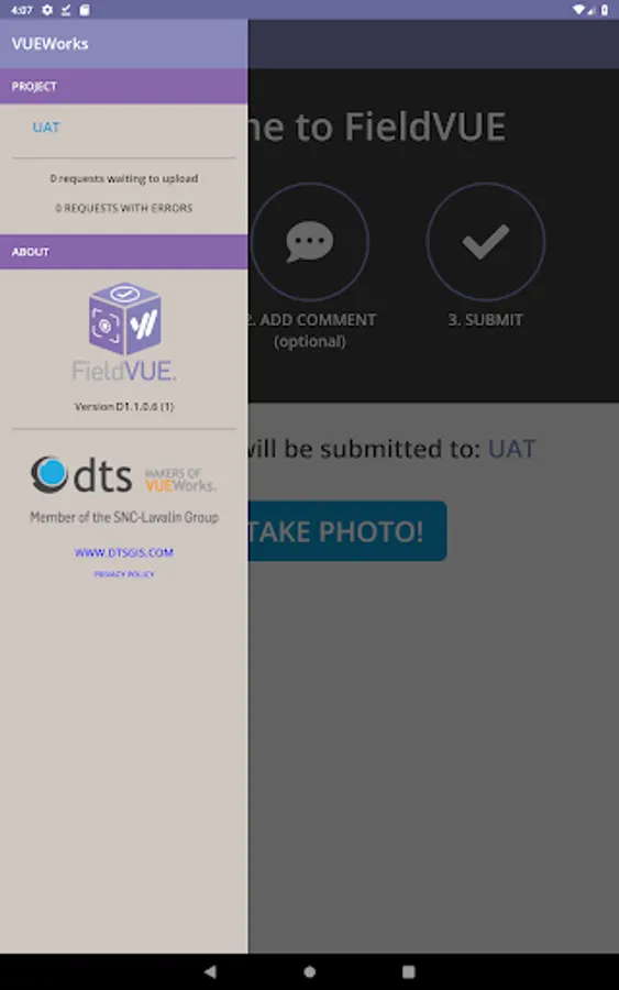 Simplify maintenance and repair issues in the field by snapping a quick photo with this app: Take a picture and automatically log a service request in VUEWorks with the location, photo and details. Internet connectivity required.