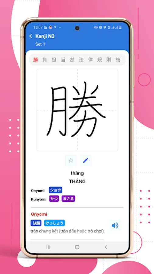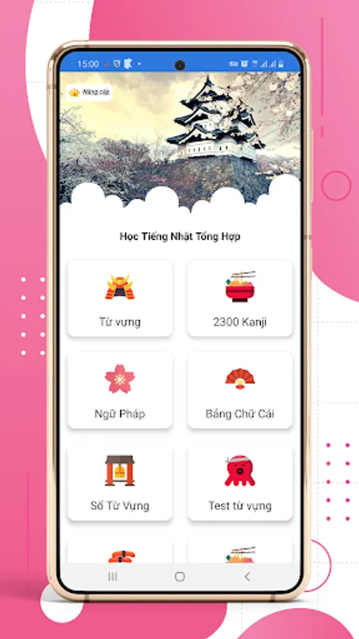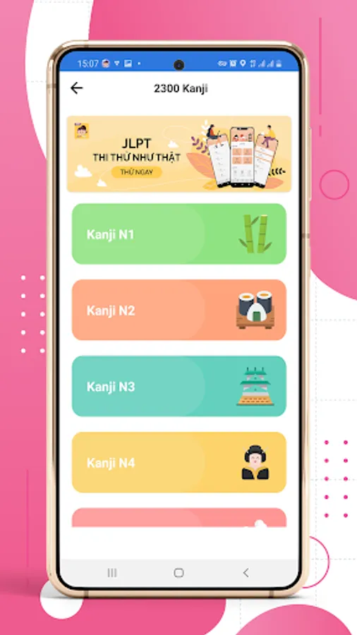 12. Learn 1945 Chinese characters (Kanji) are divided by levels from N1 - N5, Kanji is beautifully designed divided into many lessons for easy learning.