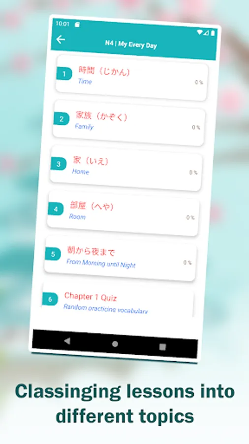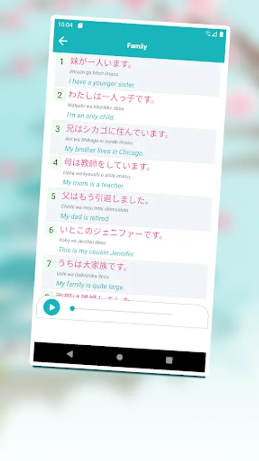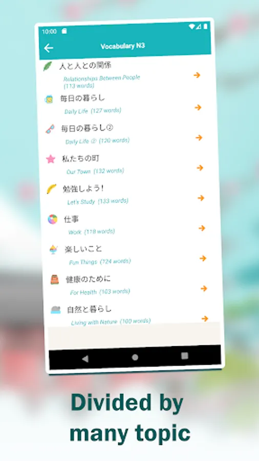 10. 1800 Japanese communication sentences with native audio are divided into many learning topics
