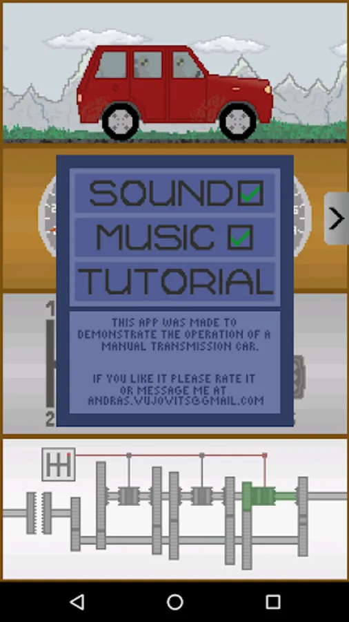 This application creates a friendly and exciting way to learn about the operation of a manual transmission car. Feel free to experiment with the controls and see what happens.