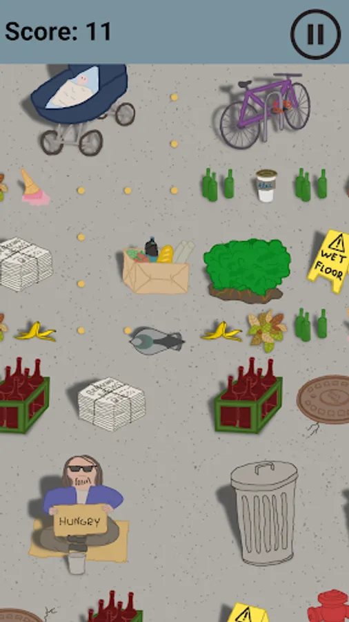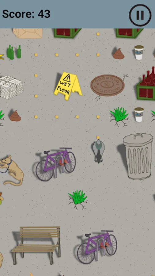 You are controlling a pigeon in the city. Try to collect all the crumbs while avoiding the obsticles.