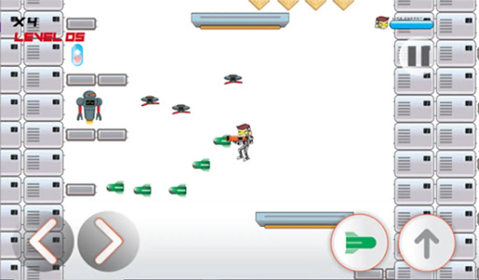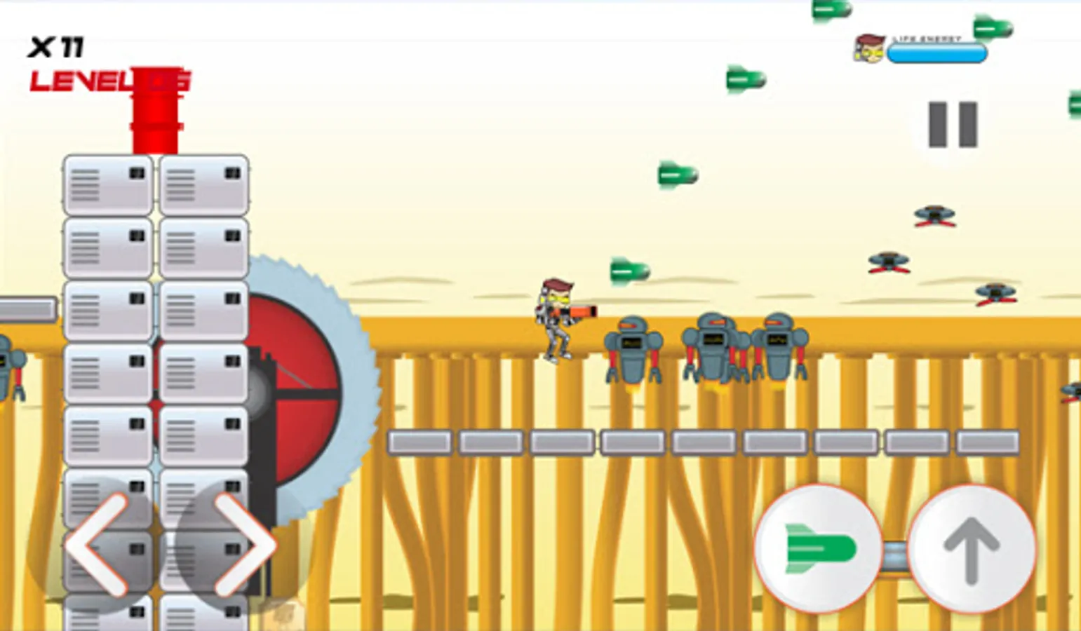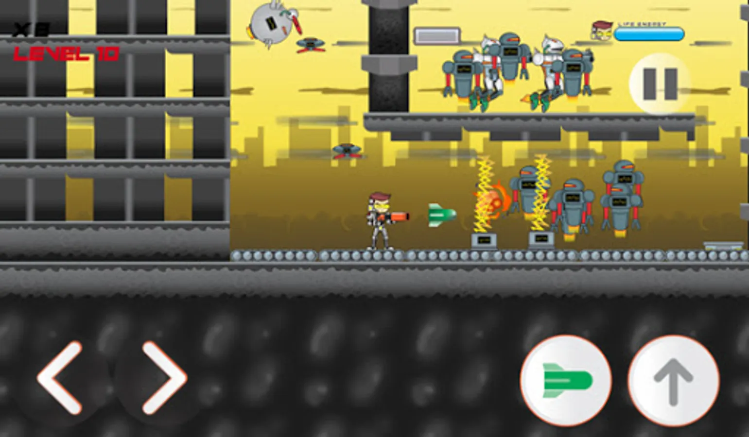 Bazooka Kidou is an action arcade platform game where you can play Kidou or Rinna, young heroes with great weapons. They are here to destroy all the evil machines and robots that became a treat to our planet and to our peace. Be the first brave hero to save the humanity and the mankind. Gain your skills, upgrade your bazooka weapon and shoot at those evil robots, drones and other evil machines until you tear them apart to the last piece of metal. Be sure to aim well and to use the most powerful missiles with the greatest destructive power.