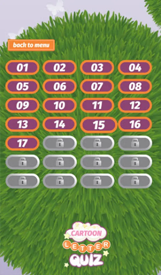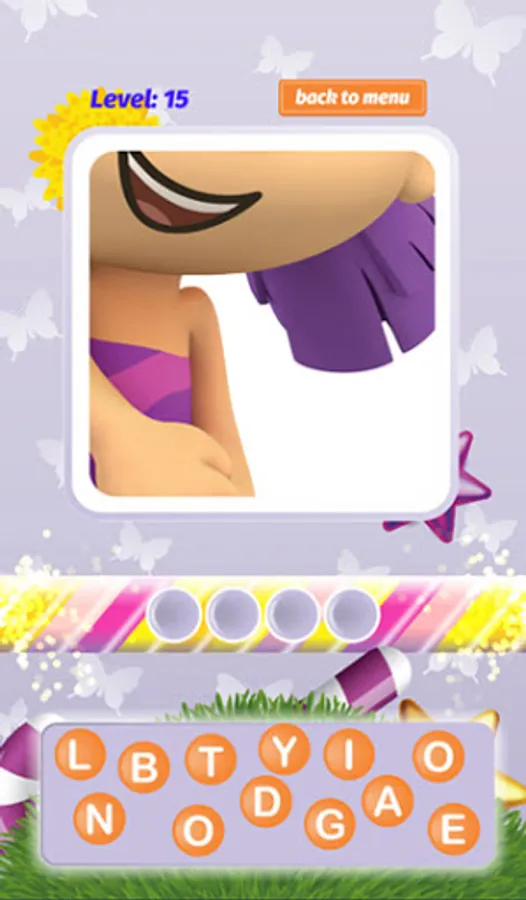 This is a nice and easy to play letter quiz game. You have four sliding images of one cartoon character, and you have to drag the right letter to the right spot to fill the name of the shown character. Once you complete one name, you are also completing one level.