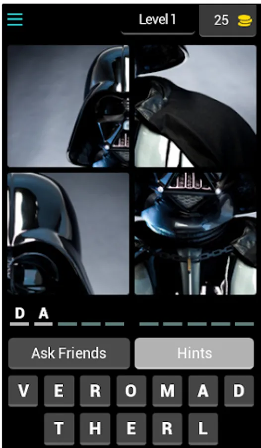 This is a trivia game where you have to Guess the Sci - Fi Character. You have four images, segments of a larger picture and you have to Guess the superhero form space, a robot or an evil monster. Those legendary heroes are all here, from the most popular and good to the ones who were only a few minutes on the scene.