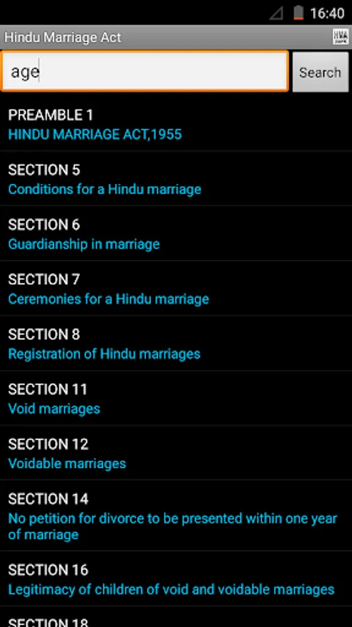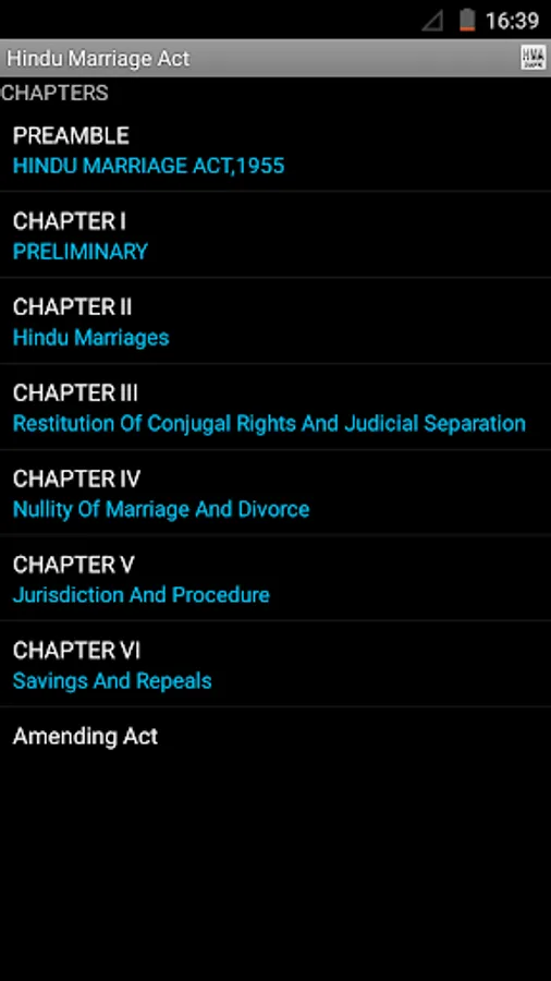 A fully functional, uptodate and FREE application featuring The Hindu Marriage Act, 1955 with latest amendments. This application, among many other features, has powerful search functionality and an intuitive user interface.