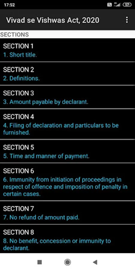 This android app contents are merely a FREE reproduction of the VsV act publicly available in the Indian Income Tax website and the official gazette notification along with a host of powerful features allowing people to search, jump to and have read to them the contents.
