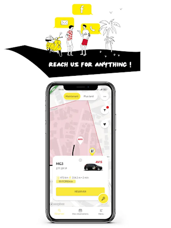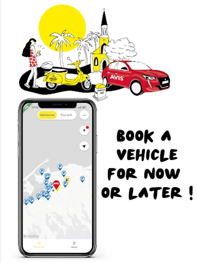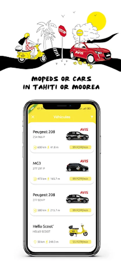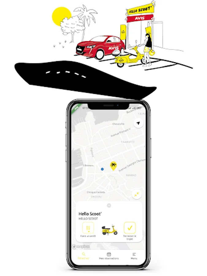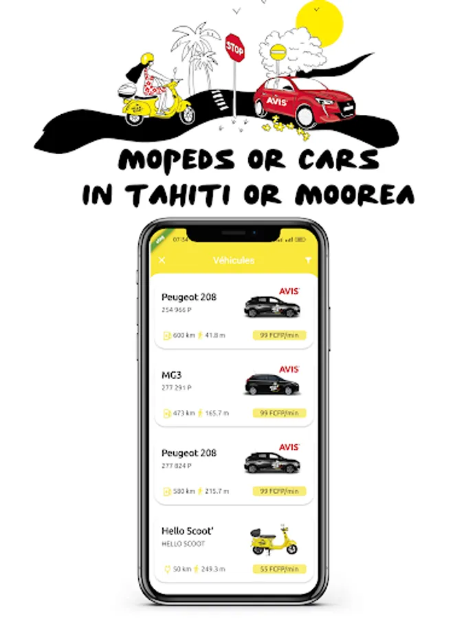 Your electric scooter or your AVIS car in Tahiti or Moorea.