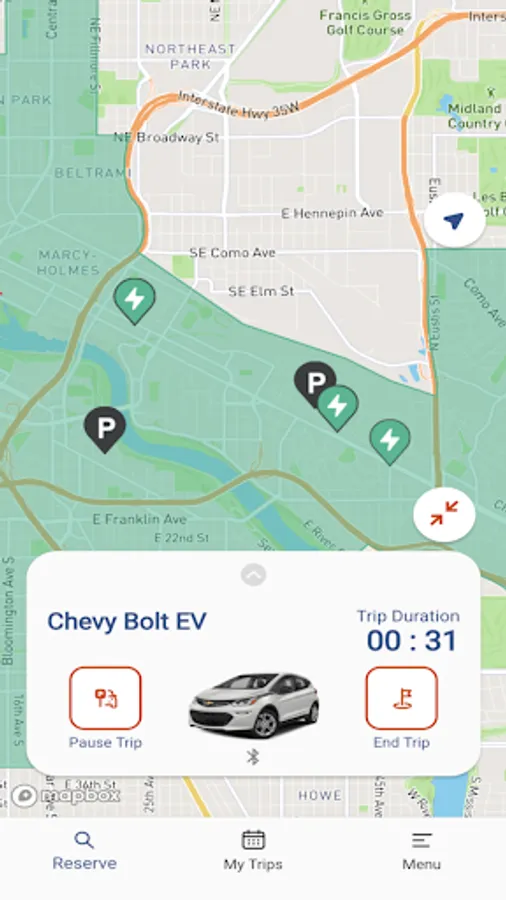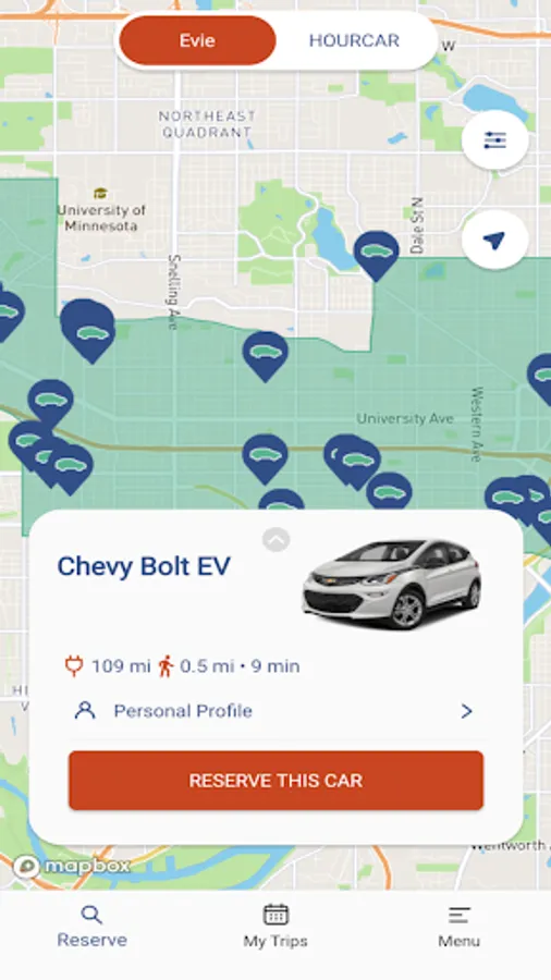 Evie Carshare is an all-electric one-way, free-floating carshare service operating in Minneapolis and Saint Paul. Trips are by the minute, hour or day.