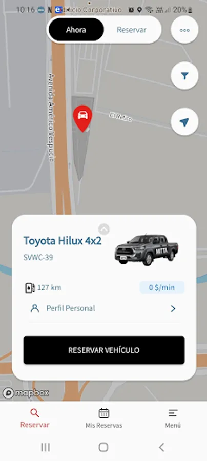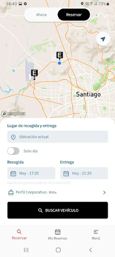 - Book: You will see on the map all the areas and vehicles that your company has available, here you can; Reserve and unlock the vehicle through the application without the need for a key.